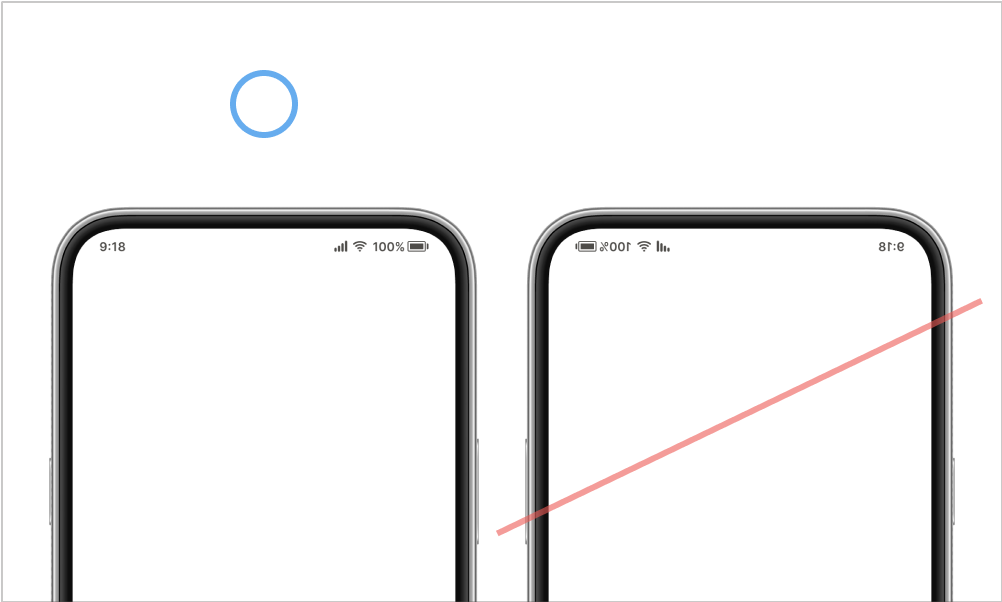 画面左側には、スマートフォンの端末モックの上に円が配置されている。右側には、スマートフォンの端末モックを反転した画像に斜線が引かれている